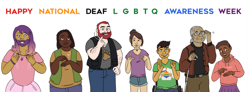 National Deaf LGBTQ Week (#DeafLGBTQWeek) is a project of the Deaf Queer Resource Center. It began in 2018 and takes annually, alternating between the 2nd and 3rd weeks in April.